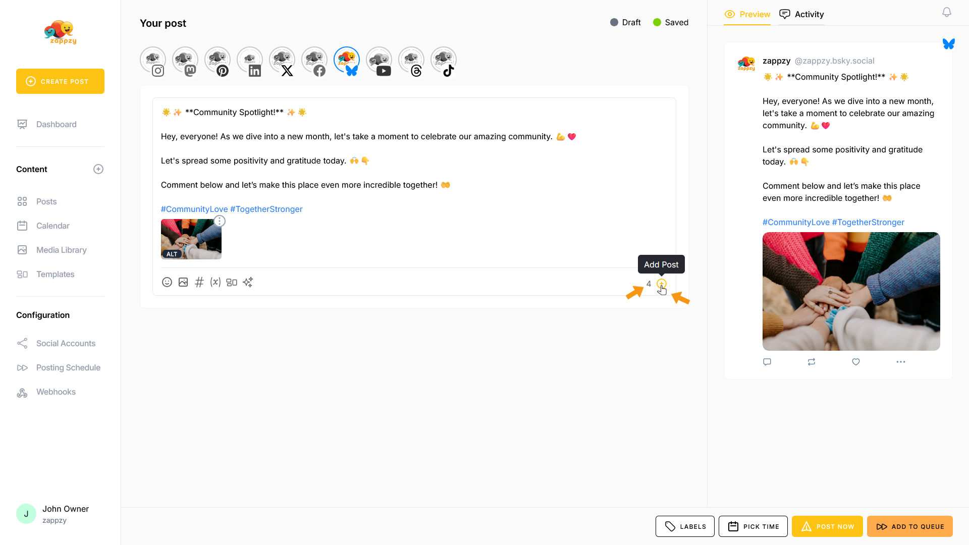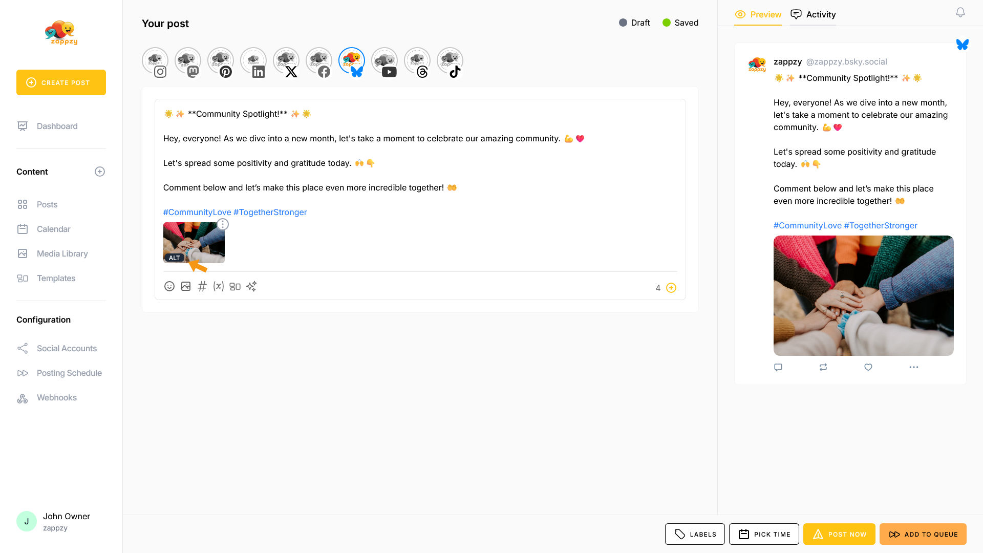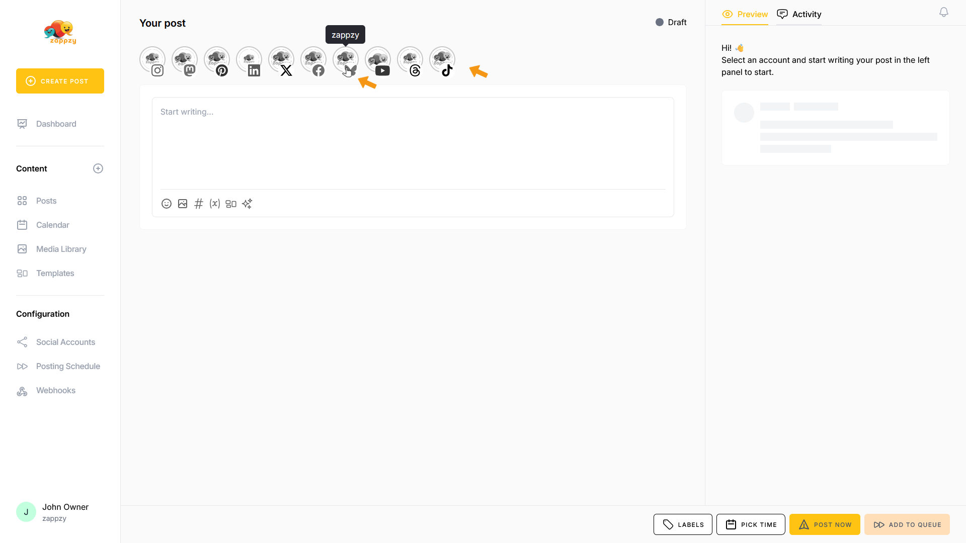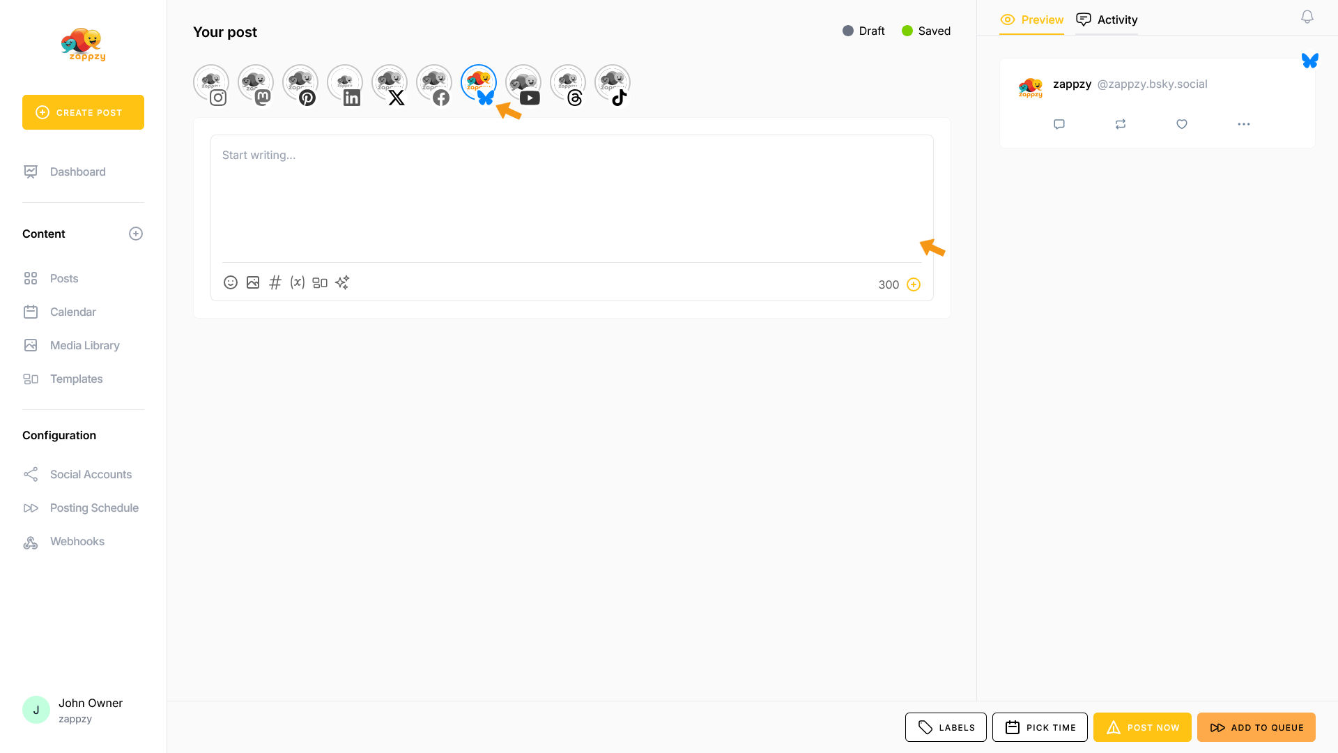 zappzy Support Center > Content > Create posts > Create a post > Create a post on Bluesky