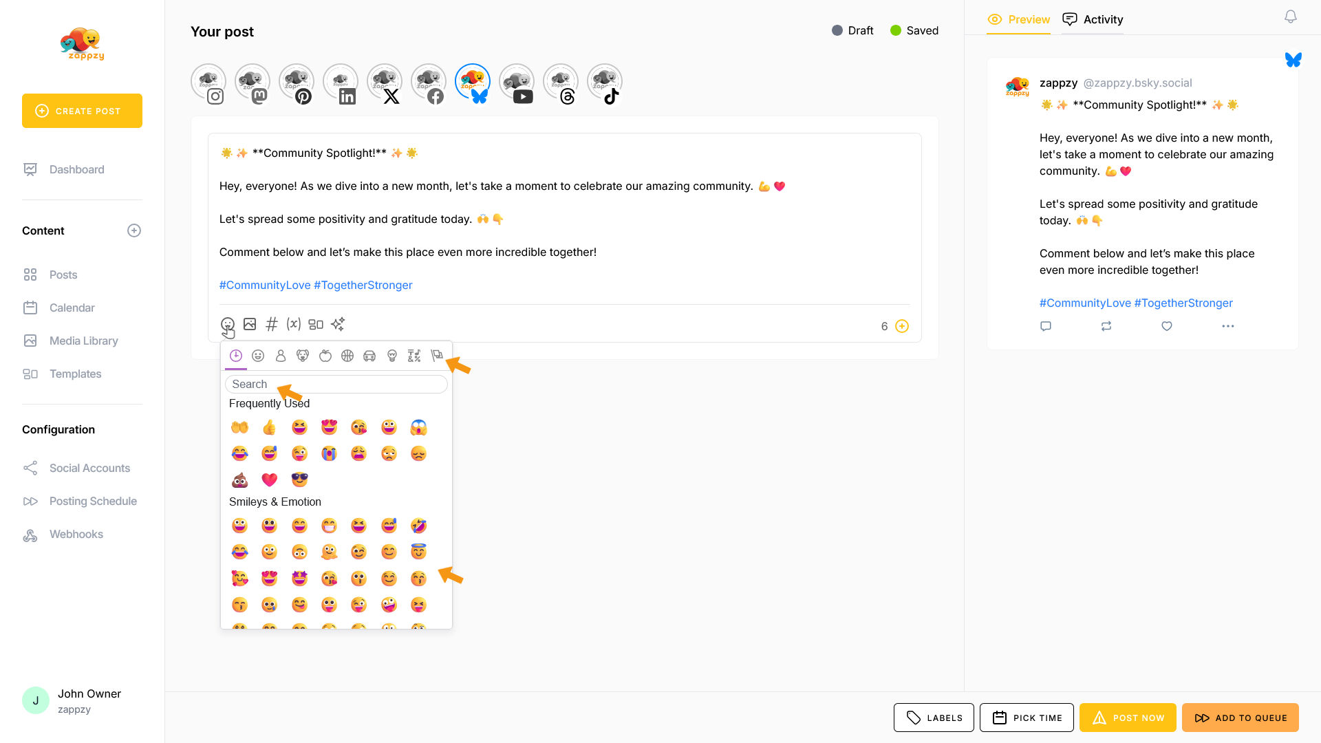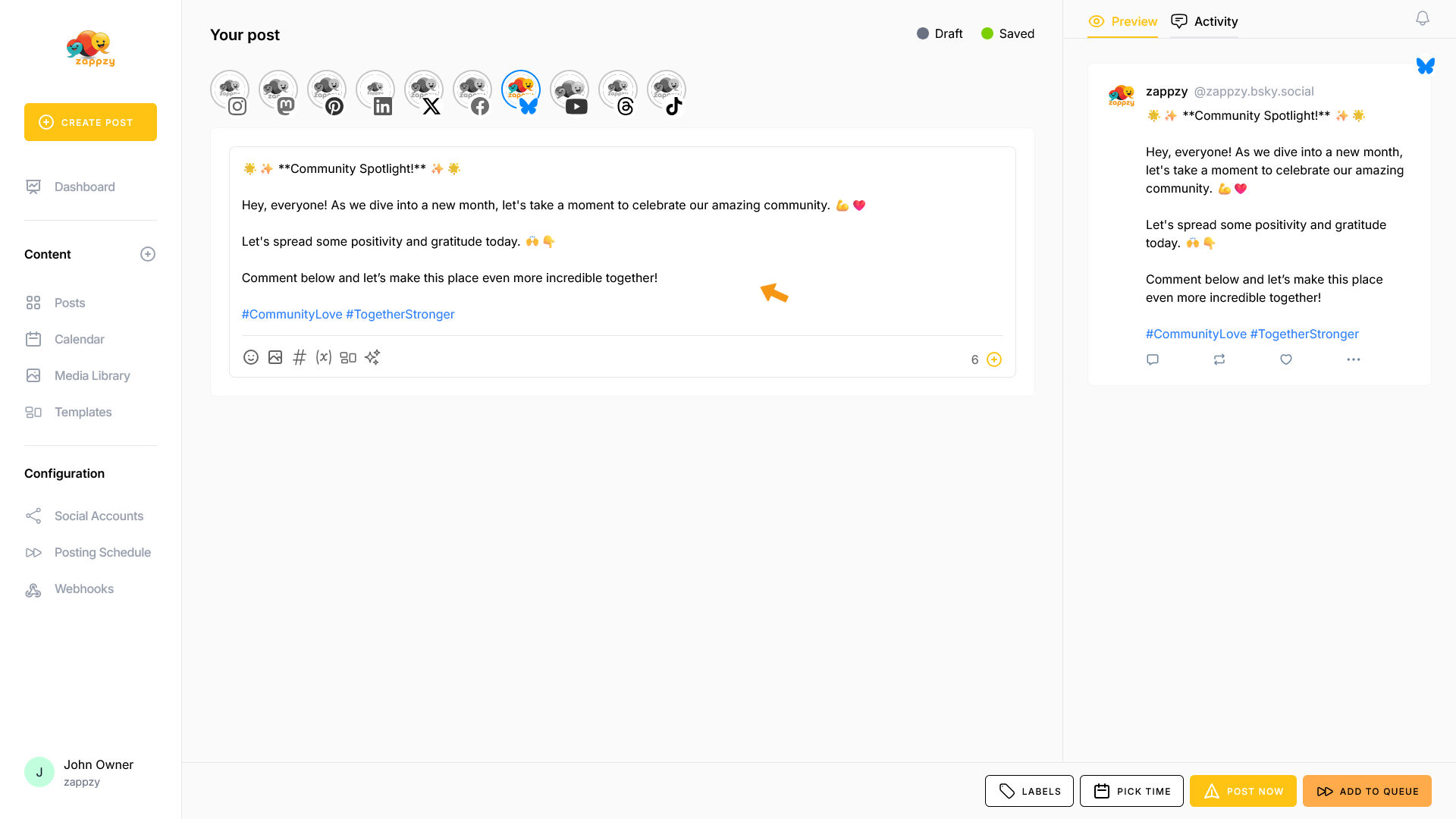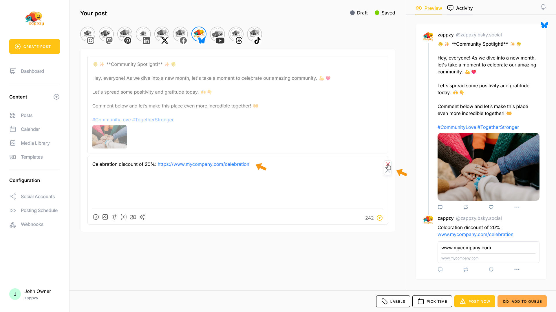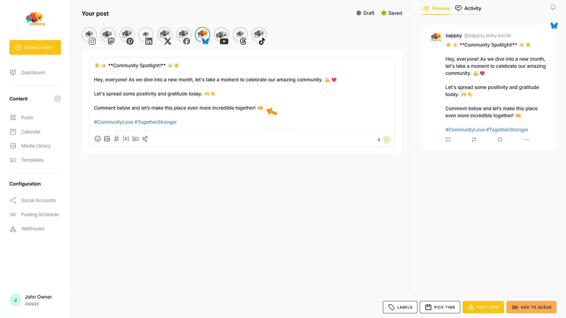 zappzy Support Center > Content > Create posts > Create a post > Create a post on Bluesky
