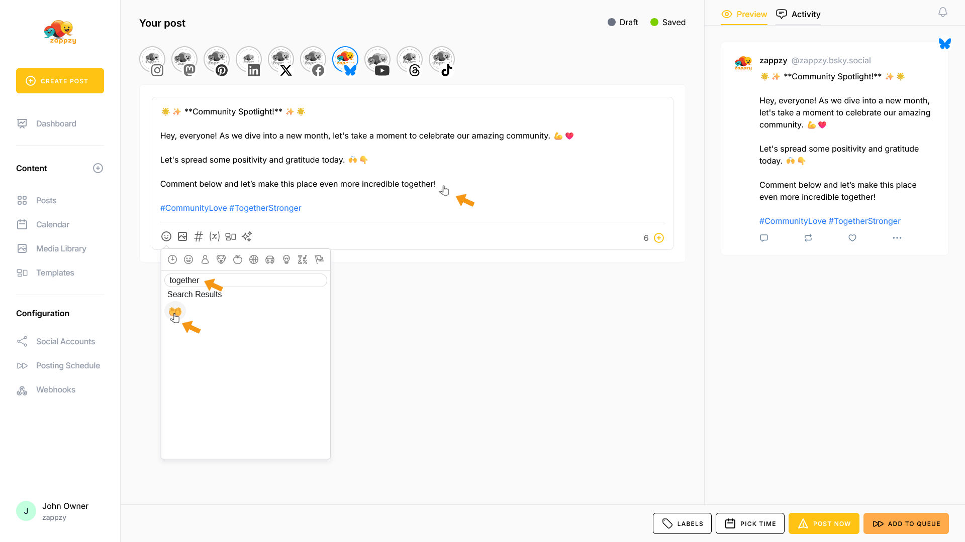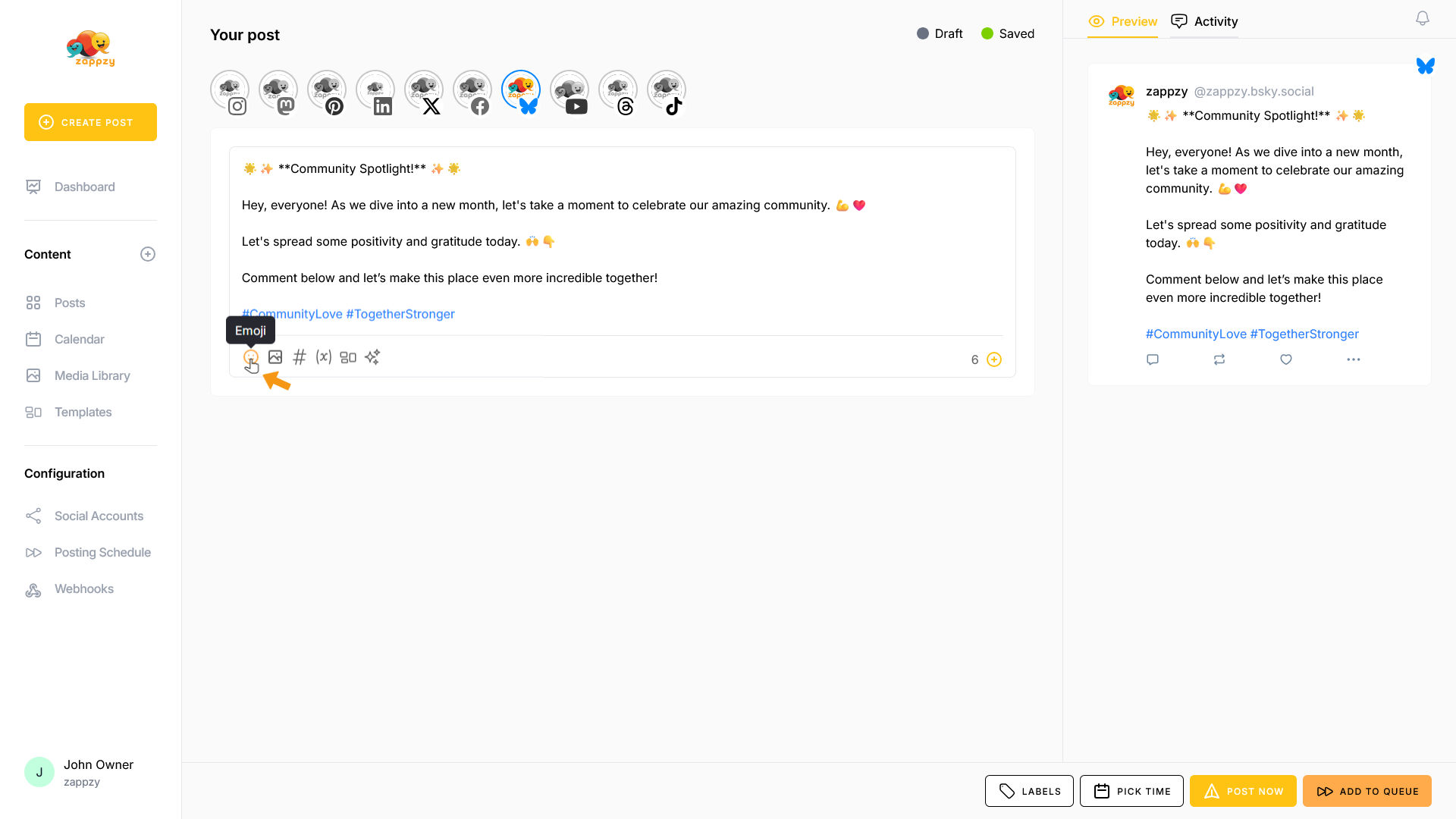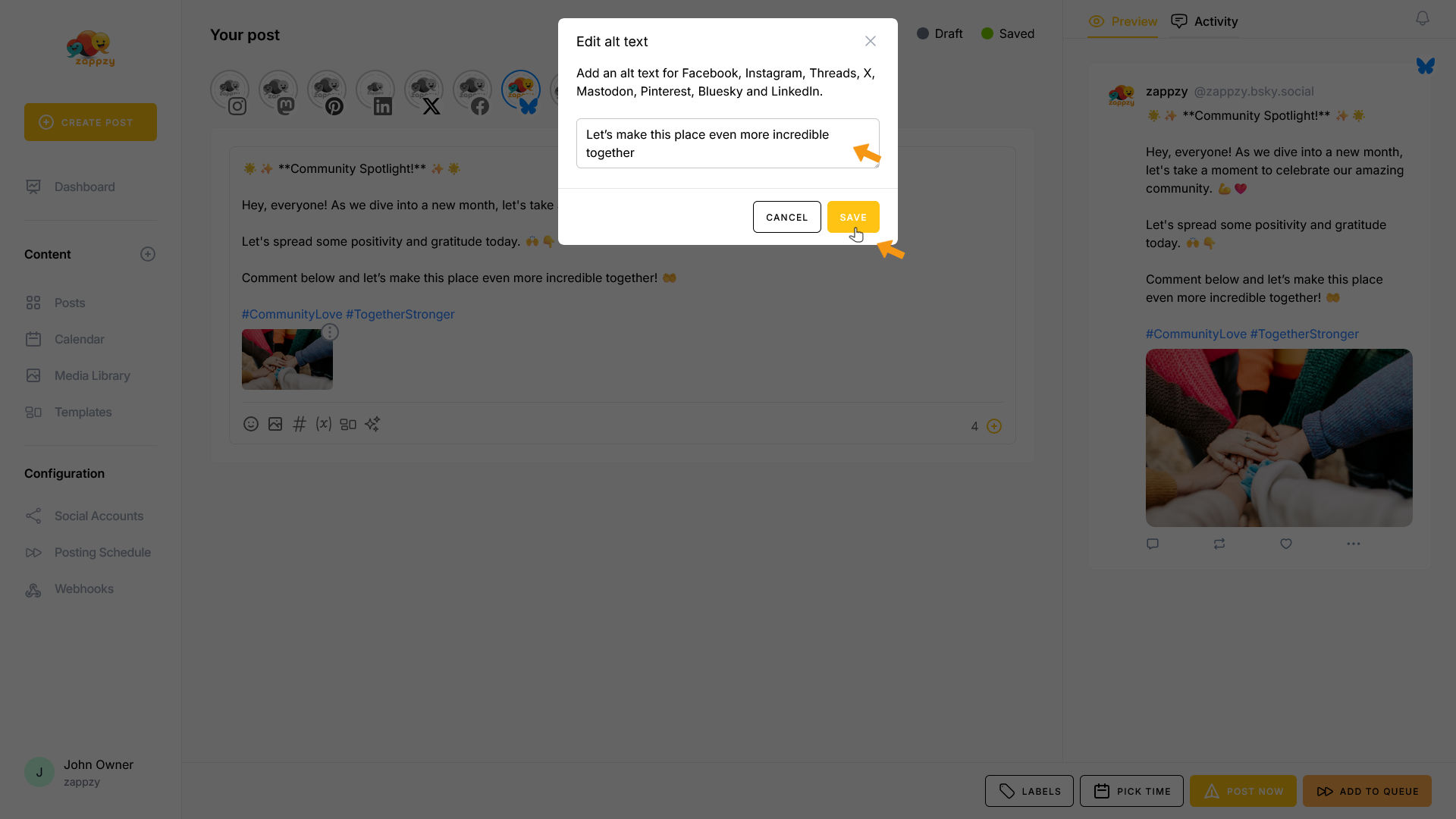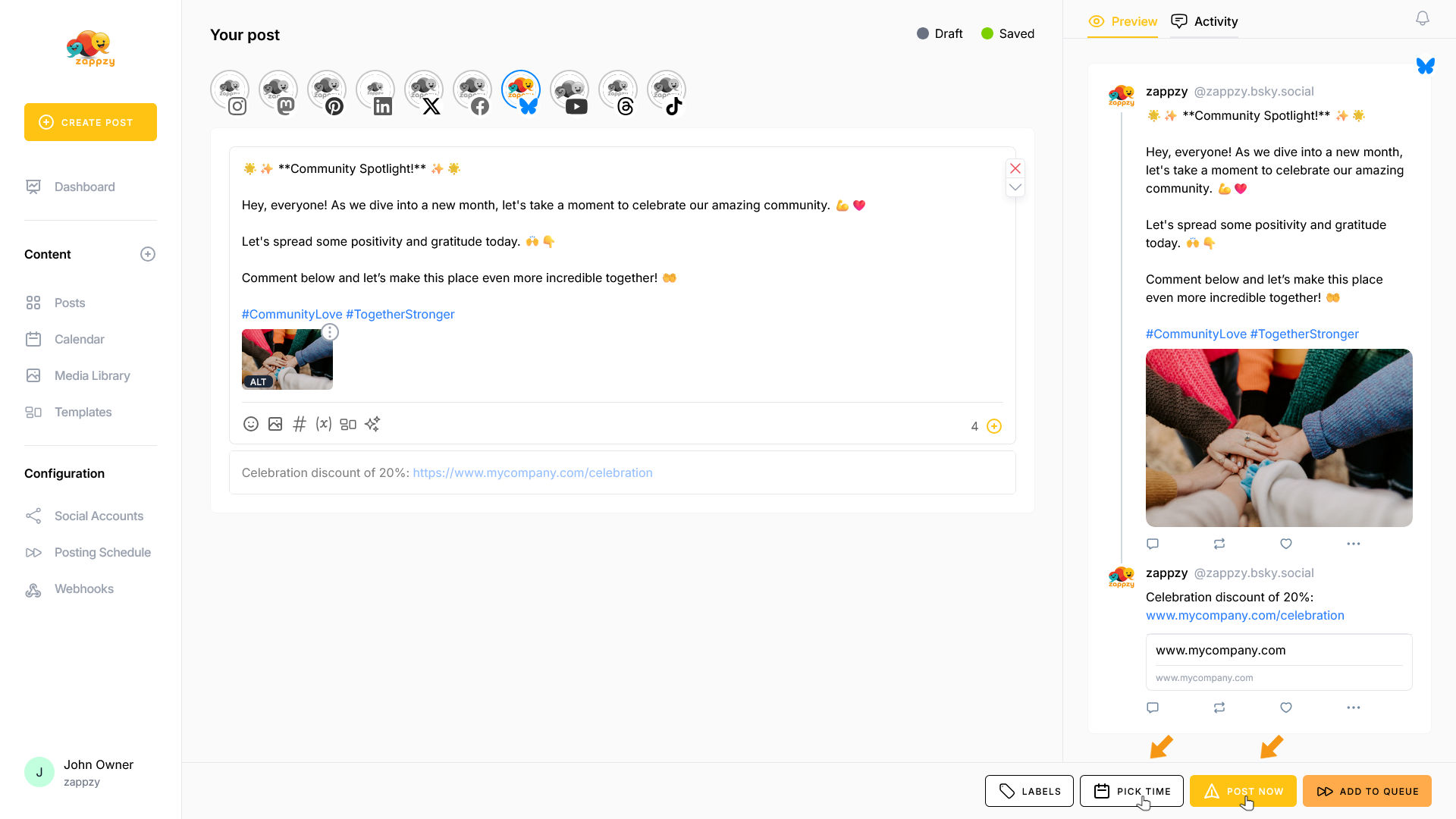 zappzy Support Center > Content > Create posts > Create a post > Create a post on Bluesky