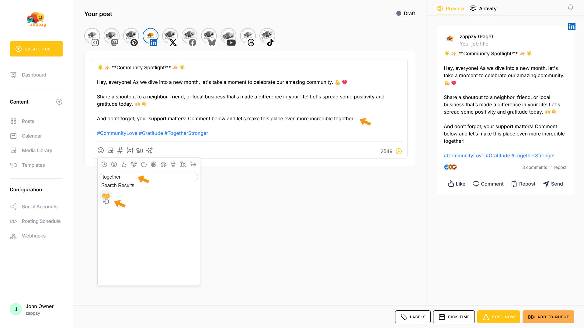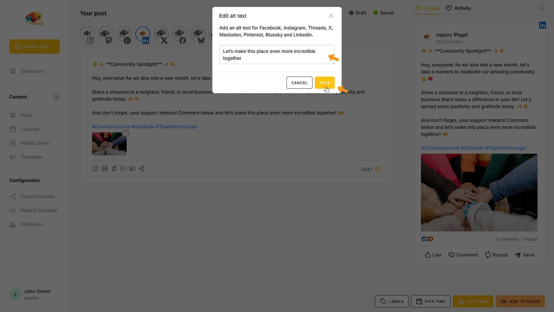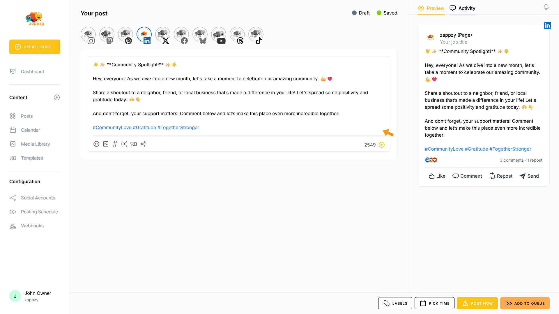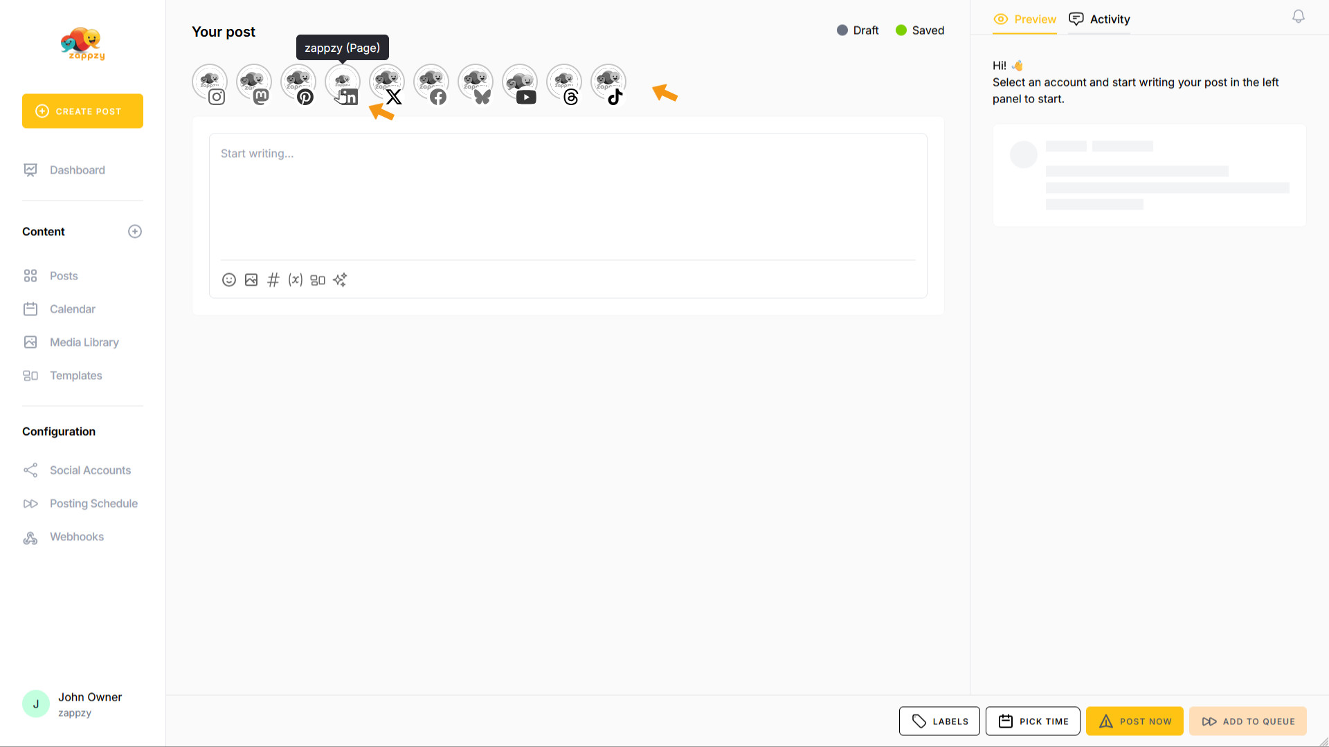 zappzy Support Center > Content > Create posts > Create a post > Create a post on LinkedIn
