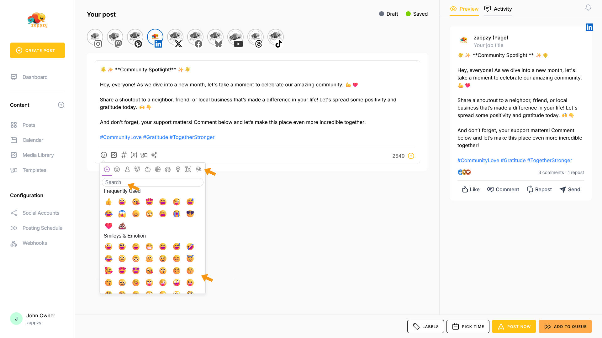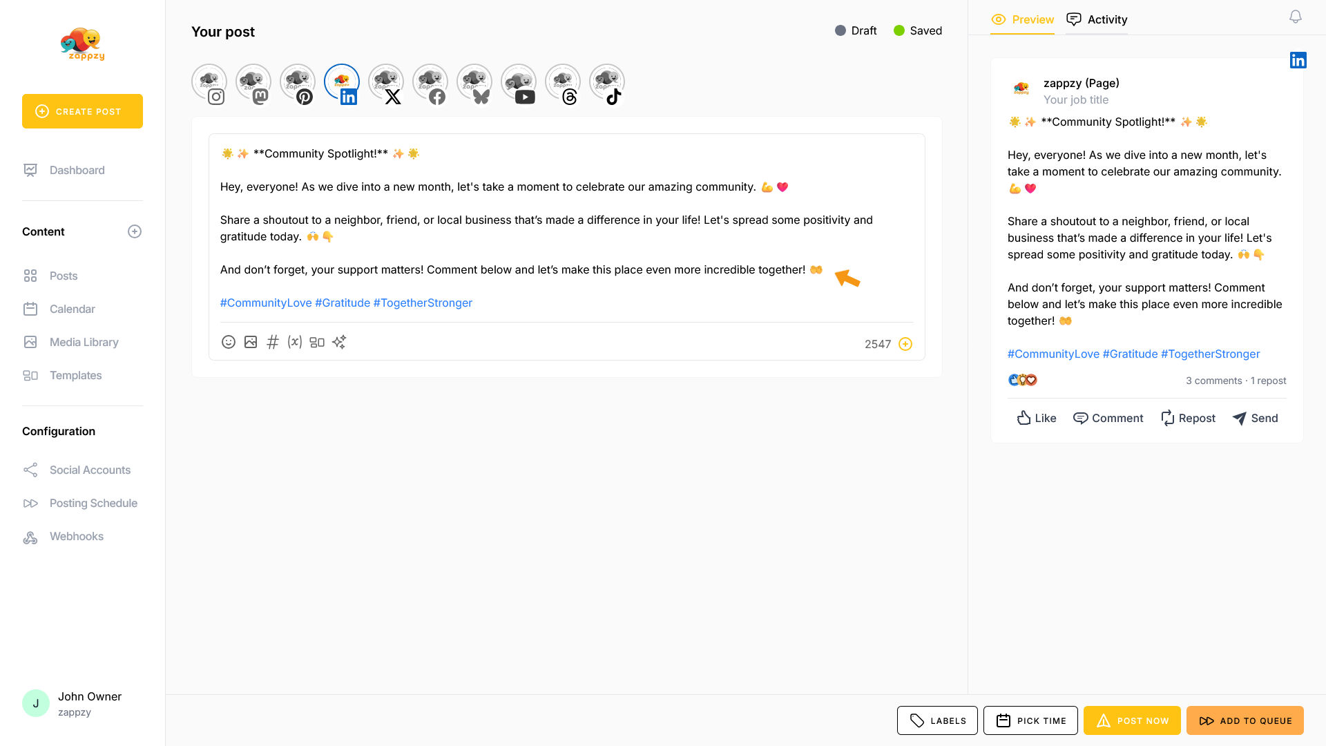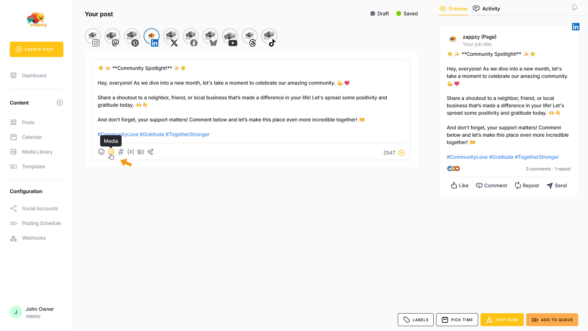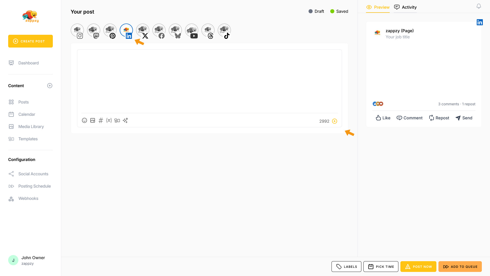 zappzy Support Center > Content > Create posts > Create a post > Create a post on LinkedIn