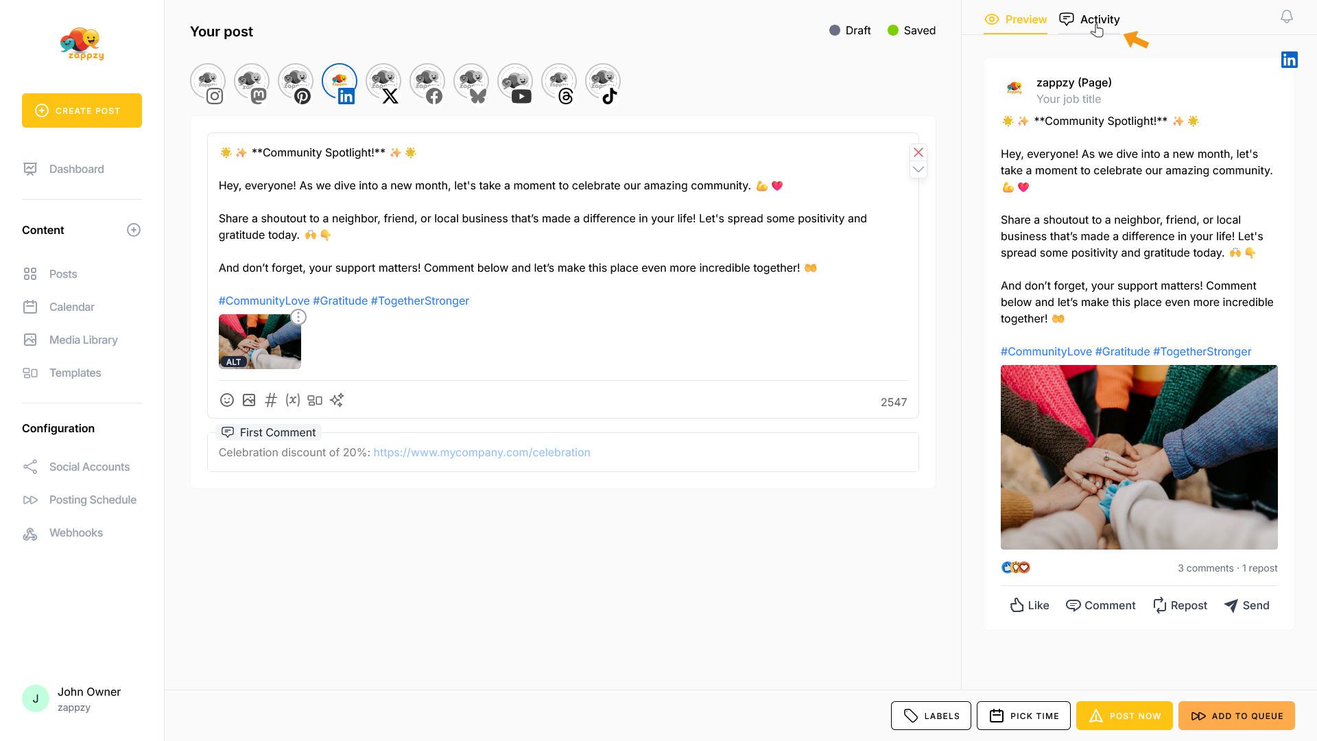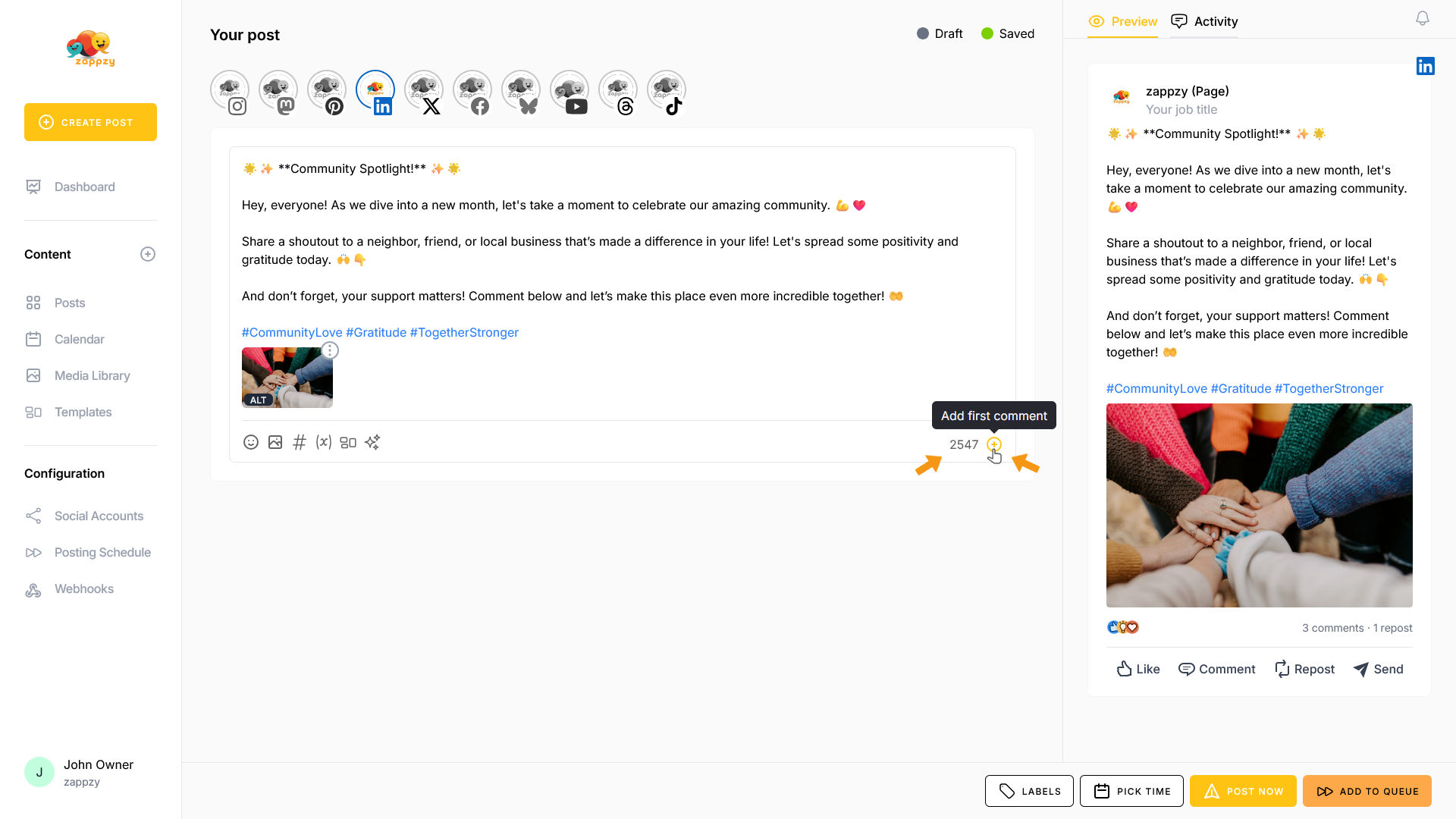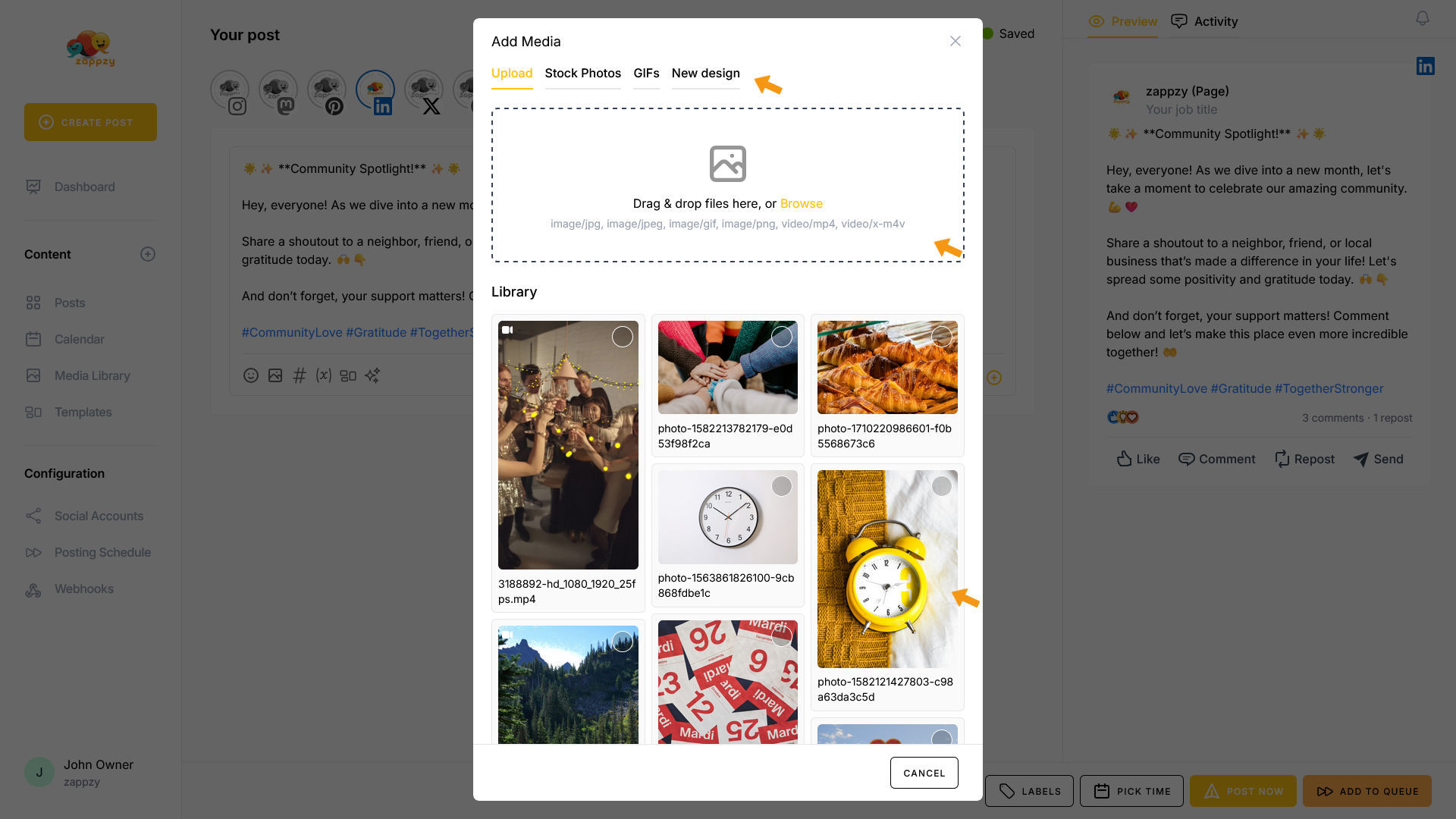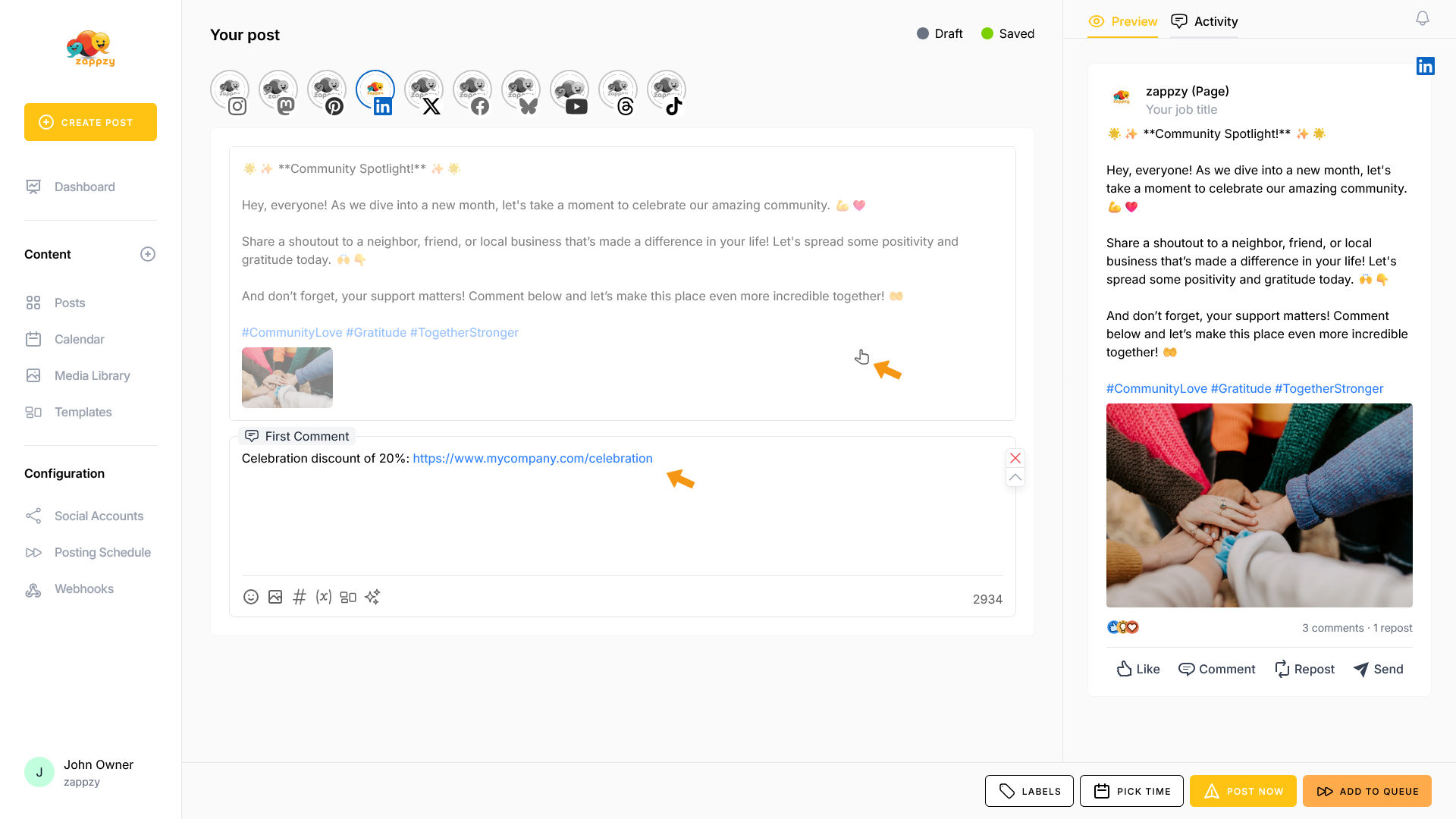 zappzy Support Center > Content > Create posts > Create a post > Create a post on LinkedIn
